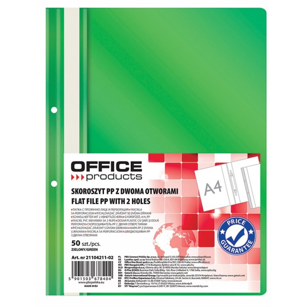 Dosar plastic PP cu sina, cu gauri, grosime 100/170microni, 50 buc/set, Office Products - verde